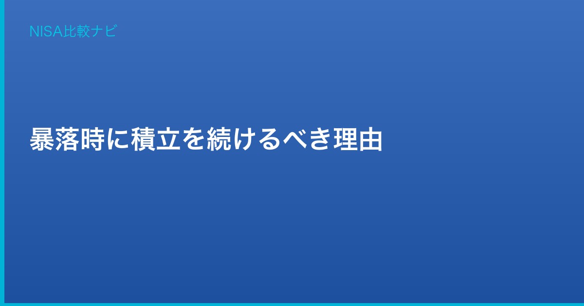 株価が大きく下落すると「積立を止めたい」「損切りしたい」という感情が生まれます。しかし暴落時こそ積立を続けることが長期投資の成果を大きく左右します。この記事では、暴落時に積立を止めてはいけない理由と正しい対処法を解説します。