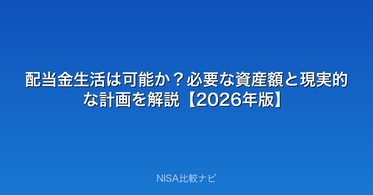 「配当金だけで生活したい」という夢を持つ方は多いでしょう。この記事では、配当金生活に必要な資産額・現実的な方法・NISAの活用法を詳しく解説します。