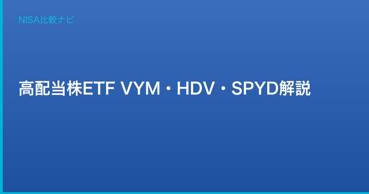 インデックス投資と並んで人気が高いのが、高配当株ETFへの投資です。特に米国の「VYM」「HDV」「SPYD」は配当重視の投資家に人気の3銘柄です。この記事では各ETFの特徴と違い、NISAでの活用方法を解説します。