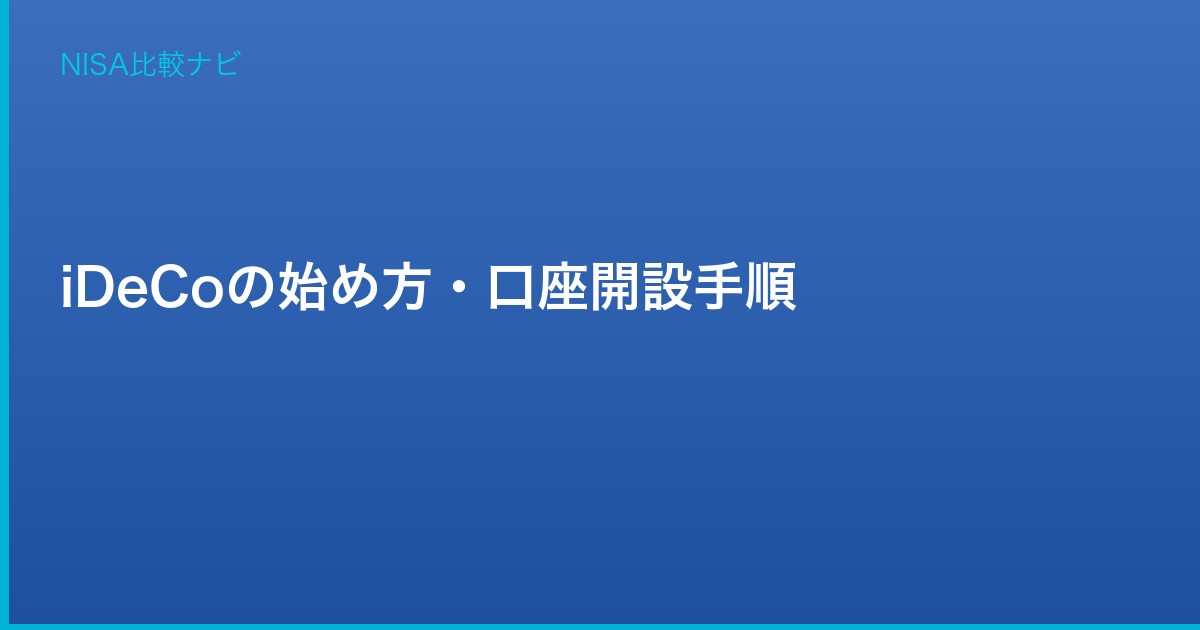 iDeCo(イデコ)の始め方・口座開設手順【2026年最新版】