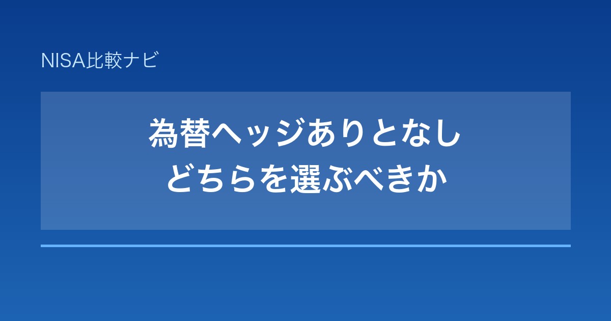 - 投資期間が短い・円高リスクを避けたい場合はヘッジありも検討の余地あり
