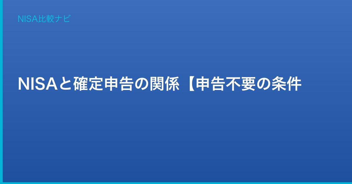 NISAで運用益が出た場合、確定申告は必要なのでしょうか。基本的にはNISAは確定申告不要ですが、例外もあります。この記事ではNISAと確定申告の関係を整理して解説します。