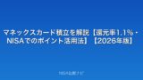 マネックスカードでの積立還元率1.1%(月5万円まで)が最大の強みです。マネックスポイントは投資信託の購入・Amazonギフト券・他社ポイントへの交換に使えます。
